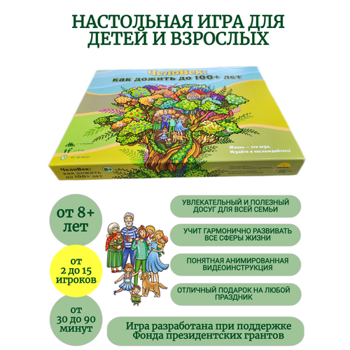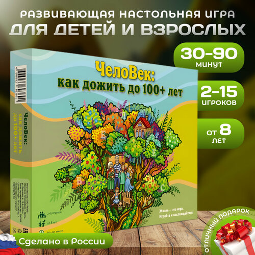 Настольная игра "ЧелоВек: как прожить до 100+ лет"/ для детей от 8 лет и взрослых / развивающая, семейная, полезная / понятная видеоинструкция / от 2 до 15 человек