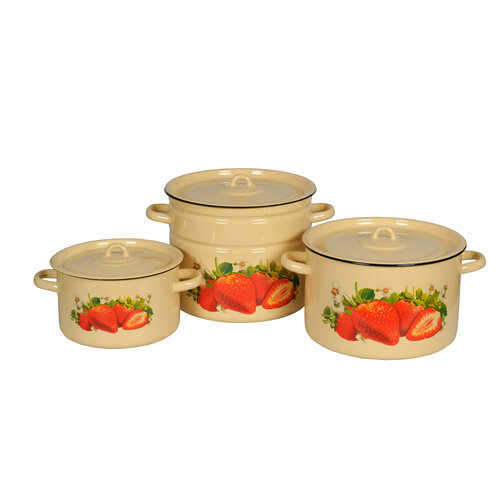 Набор посуды эмаль 3ПР №113 клубника САД крем 1С113 (3,9л, 7л, 9л) череповец