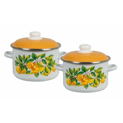 Набор посуды эмаль 3ПР №43 грушевый САД белосн 6КВ431М (3л; 4л) череповец