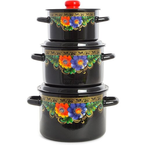Набор посуды эмаль 3ПР №144 вологда черн 1С144 (1,5л, 2,9л, 3,9л) череповец