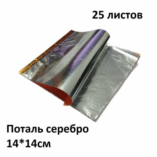 Поталь в листах Серебро 14 х14 см, 25 листов