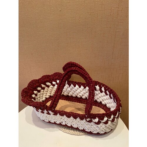 Люлька, переноска, кроватка для куклы вязаная Хлопок цвет малиновый йогурт