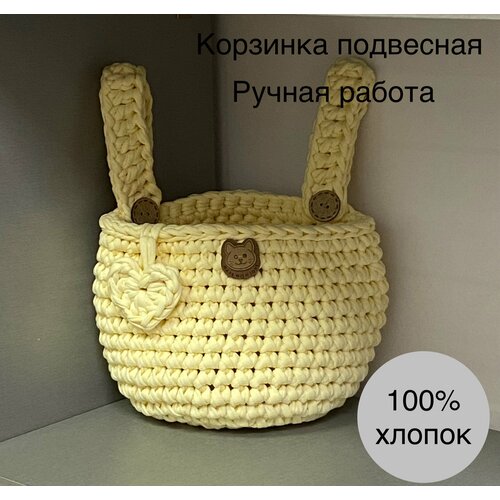 Корзина декоративная, вязаная, ручная работа, горчица