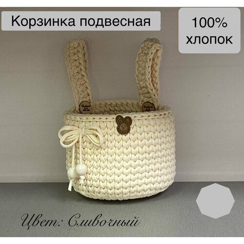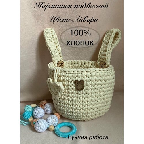 Подвесной органайзер, вязаный кармашек на детскую кроватку, хлопок 100%, айвори