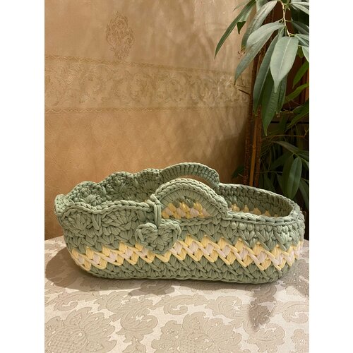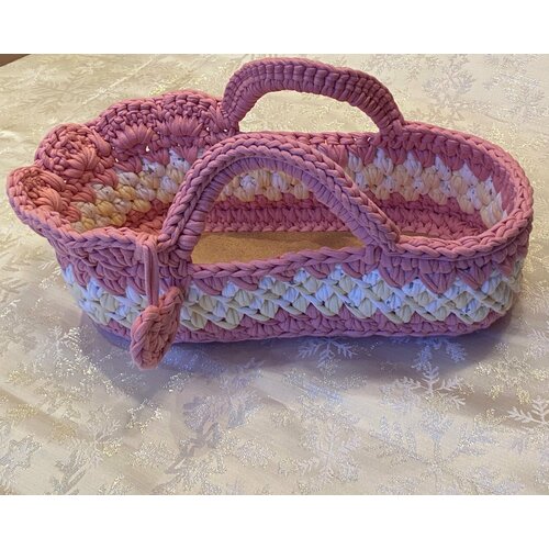 Люлька, переноска, кроватка для куклы вязаная Хлопок цвет Малави