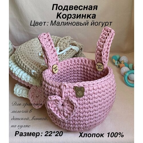 Подвесной органайзер, вязаный кармашек на детскую кроватку из хлопка 100%, малиновый йогурт