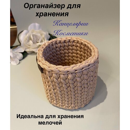 Корзина декоративная, вязаная, ручная работа, бежевая