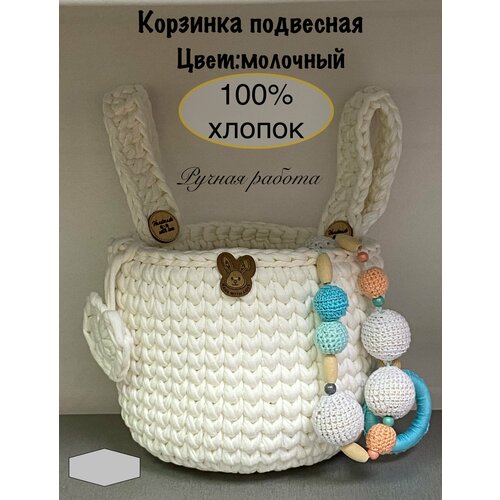 Подвесной органайзер, вязаный кармашек на детскую кроватку из хлопка 100%, молочный