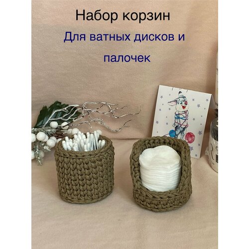 Набор вязаных корзин для хранения ватных дисков и палочек кофейный