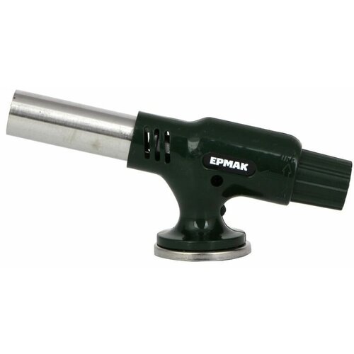 Горелка газовая с пьезоподжигом, цанговый захват, широкое сопло, пластик, латунь, Чингисхан.