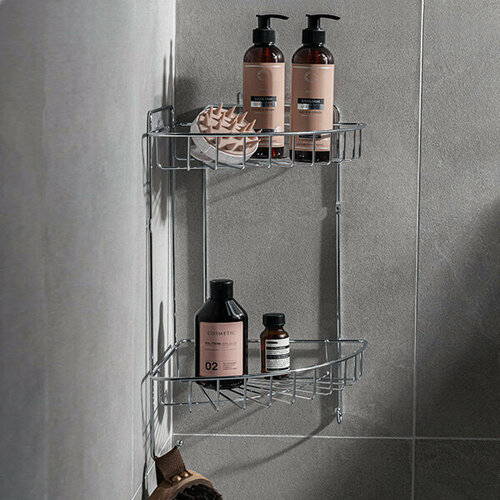Полка угловая для ванной с крючками на липучках 23,4х23,4х43,5 см