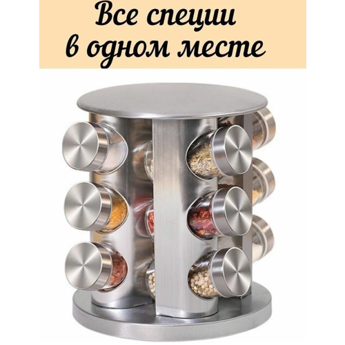 Набор для специй и приправ из нержавеющей стали, на вращающейся подставке, 12 баночек, серебряный