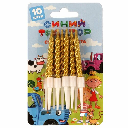 Свечи для торта, золото, Синий трактор, 10 шт. Чудо праздник CCG-74830-BT