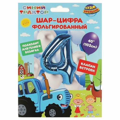Фольгированный шар-цифра 4 Синий трактор, 102 см. Чудо праздник FBL-80047-BT