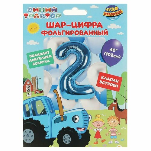 Фольгированный шар-цифра 2 Синий трактор, 102 см. Чудо праздник FBL-82026-BT