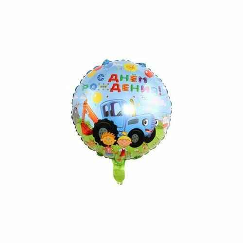 Шар фольгированный 18" круг "Синий трактор, С Днем Рождения" (45*45) в инд уп.