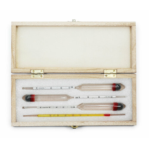 Набор спиртометров ареометров ГОСТ АСП-3 (0-40, 40-70, 70–100) +термометр, в деревянном футляре