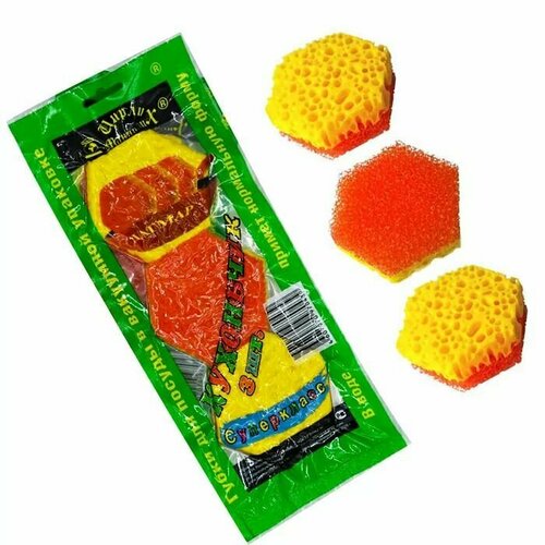 Цирлих Манирлих Губка для посуды Суперкласс Кухоньчик, 3 штуки