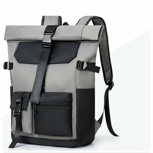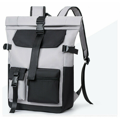 Рюкзак молодёжный, для учебы, работы, ноутбука, школьный CityFOX.Looks of the City RK-12/светло-серый-черный_карман