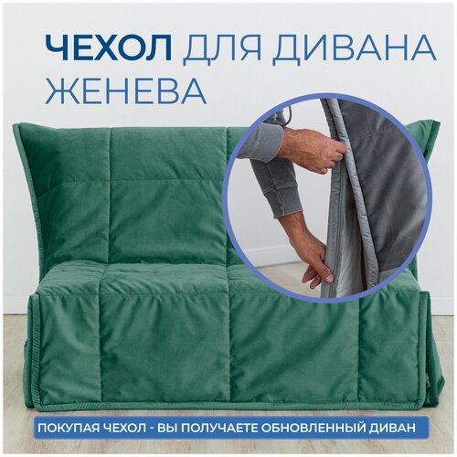 Чехол для дивана Аккордеон Женева 120 см, Благородный Зеленый