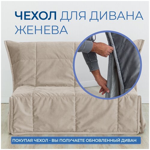 Чехол для дивана Аккордеон Женева 120 см, Марципановый Бежевый