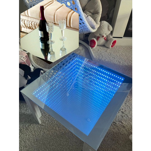 Зеркально-стеклянный журнальный стол с подсветкой, квадратный