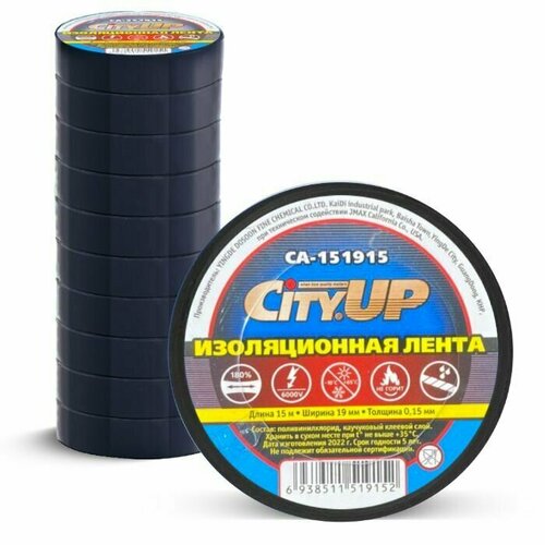 Изолента, изоляционная лента ПВХ, черная, 15 м х 19 мм, 10 шт