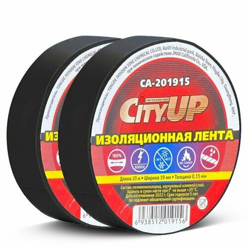 Изолента, изоляционная лента ПВХ, черная, 20 м х 19 мм, 2 шт