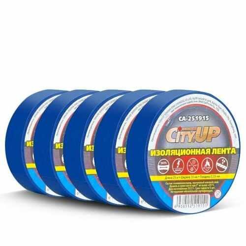 Изолента, изоляционная лента ПВХ, синяя, 25 м х 19 мм, 5 шт
