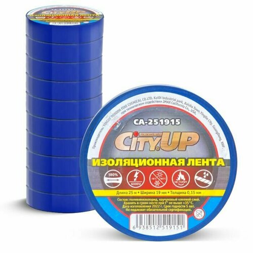 Изолента, изоляционная лента ПВХ, синяя, 25 м х 19 мм, 10 шт