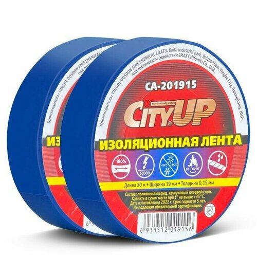 Изолента, изоляционная лента ПВХ, синяя, 20 м х 19 мм, 2 шт