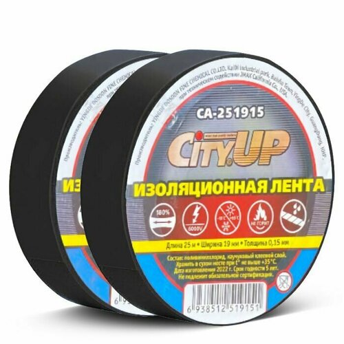 Изолента, изоляционная лента ПВХ, черная, 25 м х 19 мм, 2 шт