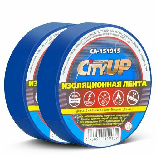 Изолента, изоляционная лента ПВХ, синяя, 15 м х 19 мм, 2 шт