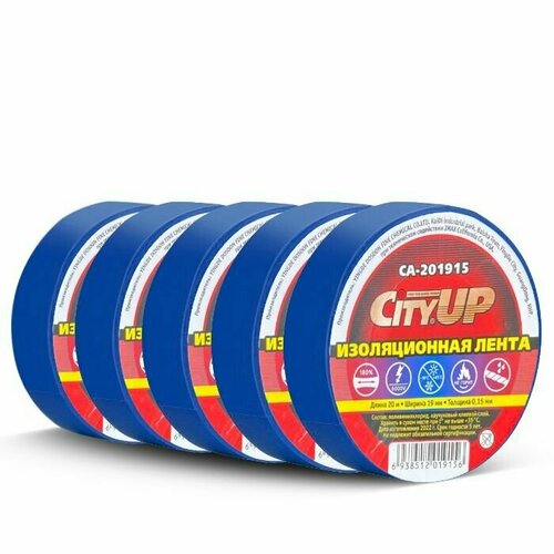 Изолента, изоляционная лента ПВХ, синяя, 20 м х 19 мм, 5 шт