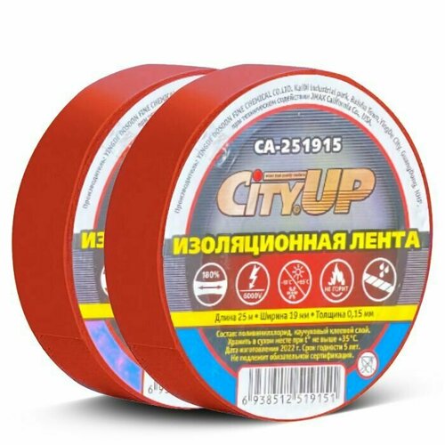 Изолента, изоляционная лента ПВХ, красная, 25 м х 19 мм, 2 шт