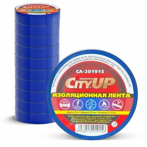 Изолента, изоляционная лента ПВХ, синяя, 20 м х 19 мм, 10 шт