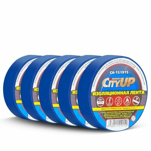 Изолента, изоляционная лента ПВХ, синяя, 15 м х 19 мм, 5 шт