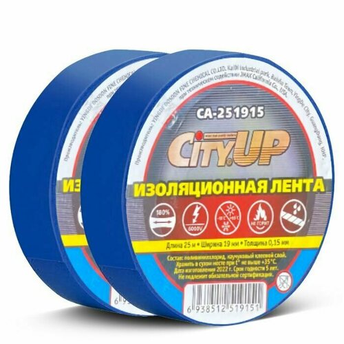 Изолента, изоляционная лента ПВХ, синяя, 25 м х 19 мм, 2 шт