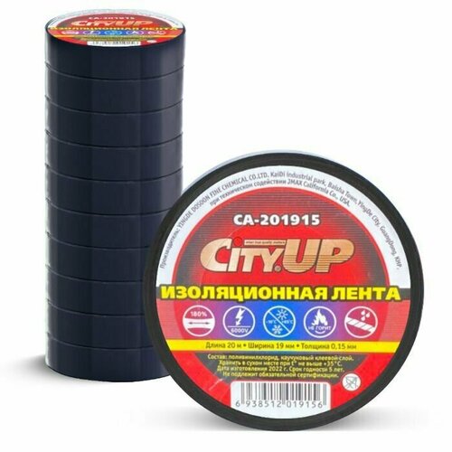 Изолента, изоляционная лента ПВХ, черная, 20 м х 19 мм, 10 шт