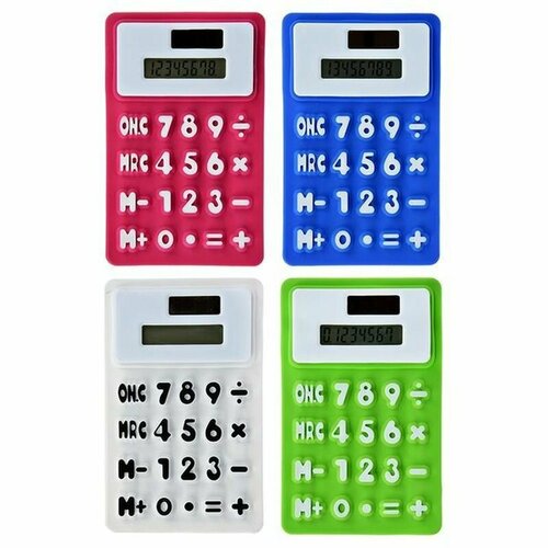Калькулятор 8-разр. с гибким силиконовым корпусом и магн, солн. питание, 7,3*11,6см, (цвет в ассортименте) (цена за 1 шт.)