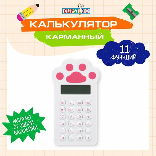 Калькулятор карманный ClipStudio, в форме лапки, 13,5х7,2х1,3 см, 1xLR1130, блистер