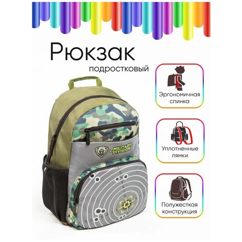 Милитари дивижн Рюкзак подростковый 40х30х20см, 1 отделение, 5 карманов, эргоном. спинка, ПЭ