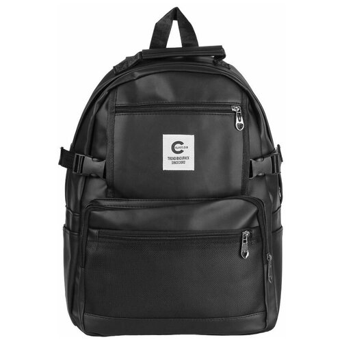 Рюкзак универсальный 43x30x13см, 1 отделение, 5 карманов, боковые утяжки, искусственная кожа, черный