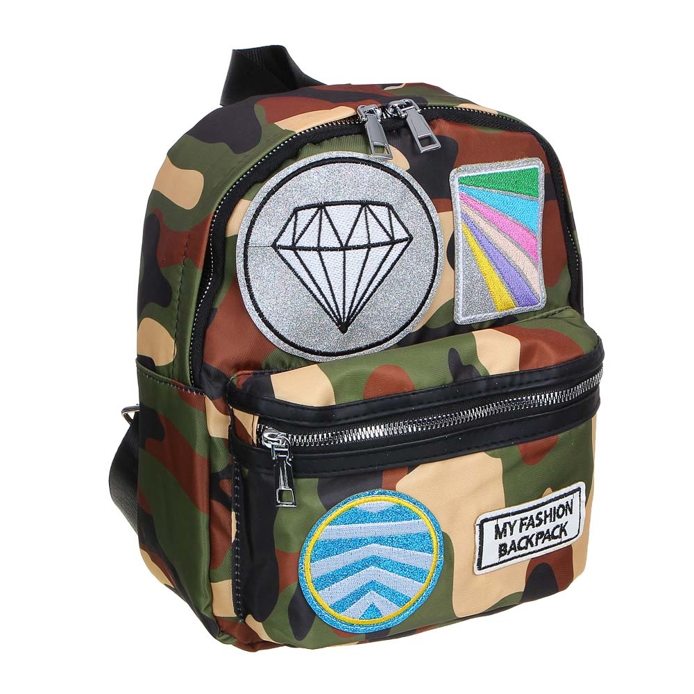 Мини-рюкзак, 28x23x10см, 1 отделение, паттерн "милитари", нашивки, накладной карман, полиэстер