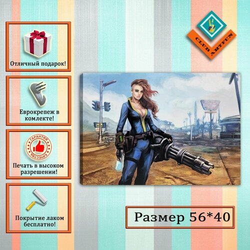 Картина на холсте Fallout "Девушка и миниган" 56х40 см.