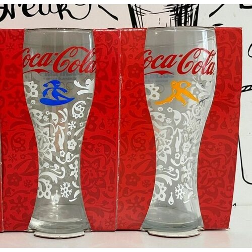 Набор бокалов Coca-Cola Сочи 2014 сноуборд и хоккей, стаканы Кока-Кола (2 шт.)