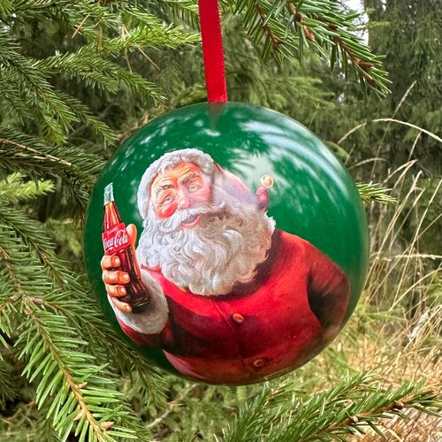 Елочная игрушка Coca-Cola шкатулка для сюрприза Санта пьет колу