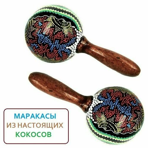 Набор маракасов из природного кокоса диаметр 13 см (2шт), народные инструменты