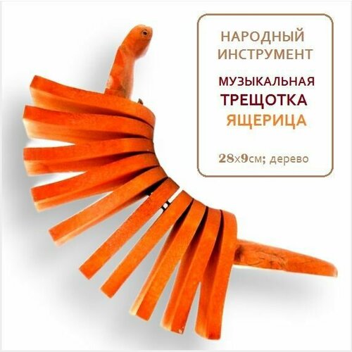 Пластинчатый народный ударный музыкальный инструмент трещотка, перкуссия в виде ящерицы 28х9см