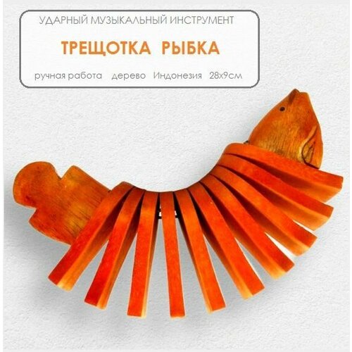 Народный ударный инструмент Пластинчатая музыкальная трещотка Рыбка 28х9см, дерево